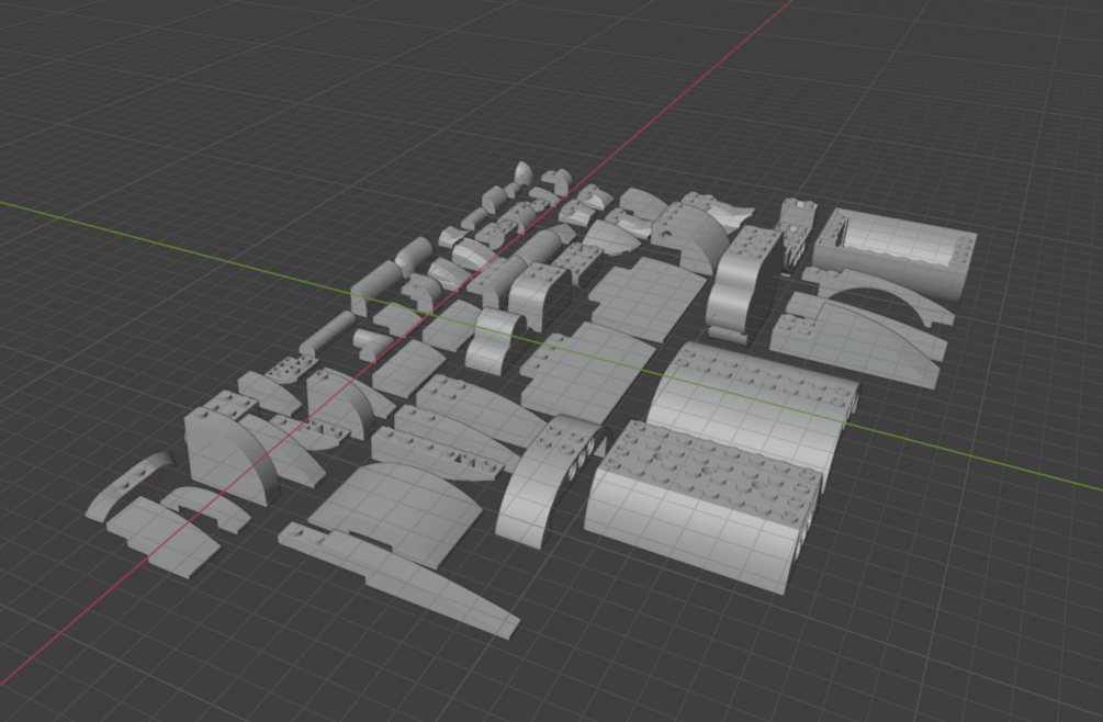 3d printable models of different LEGO curved slope bricks